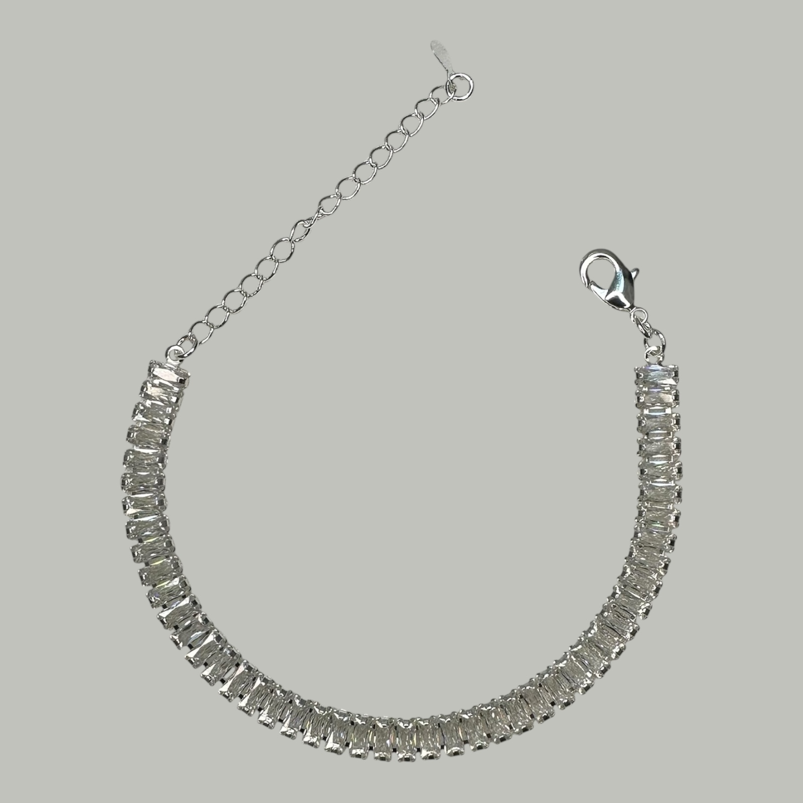 PULSEIRA RIVIERA ZIRCÔNIAS CRISTAL BAGUETE TURMALINA BANHO DE PRATA
